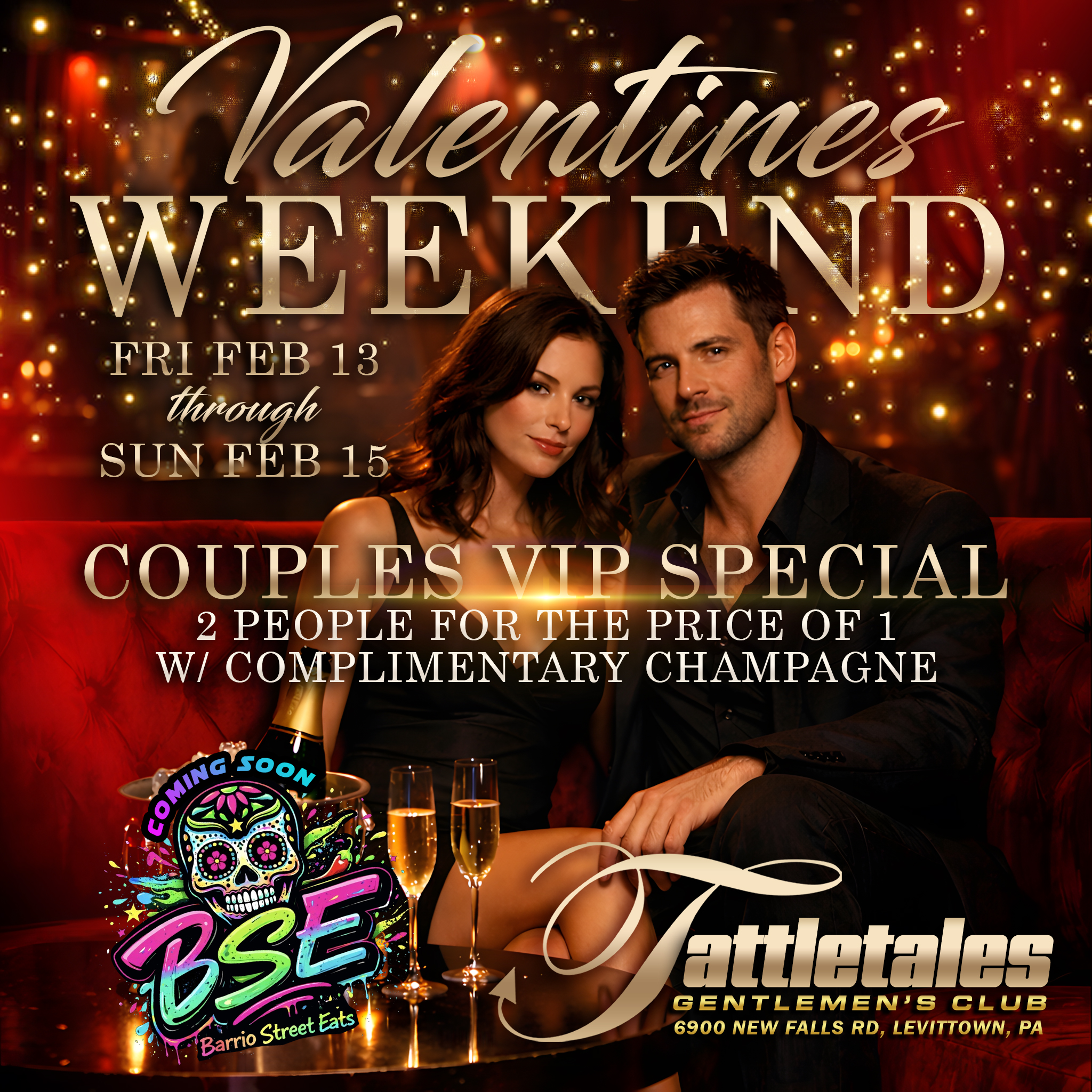 February 13 @ 12:00 pm - February 16 @ 12:00 am EST Valentines Weekend Tattletales Gentleman's Club - Levittown, PA 6900 New Falls Rd., Levittown, PA, United States